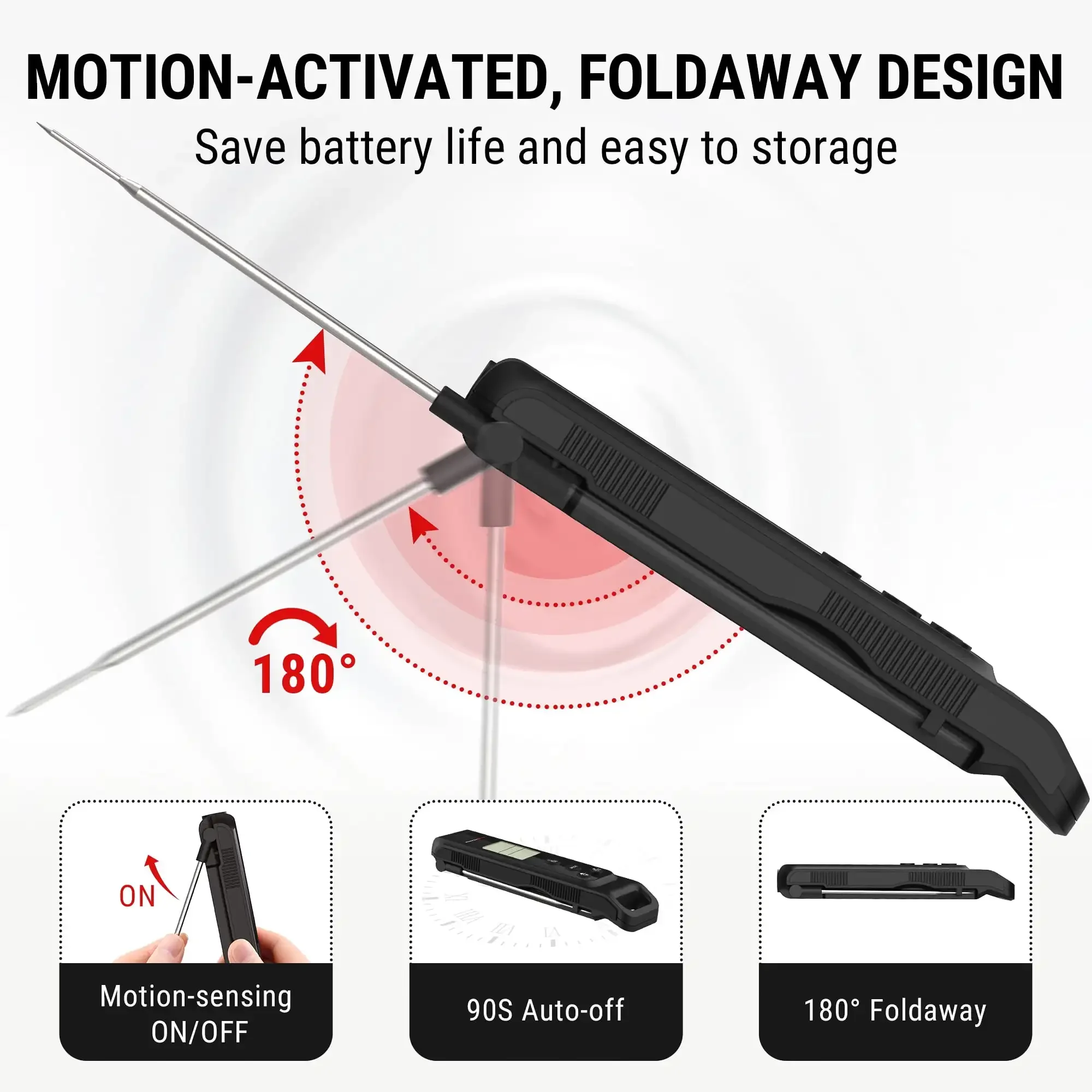 - Fast, Accurate Temperature Probe for Cooking: Features a high-precision sensor, delivering accurate internal temperature readings to ±1.8°F within 2-3 seconds across a range from -58°F to 572°F. A must-have for cooking, baking, grilling, and deep-frying.