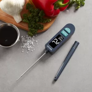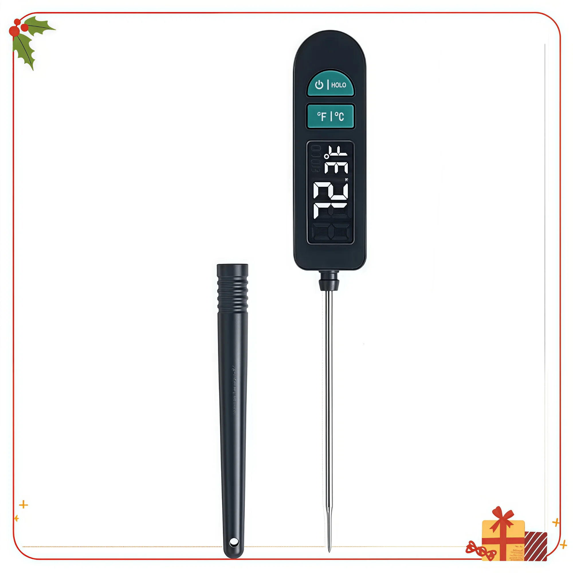 - HOLD FUNCTION: This premium features on this food thermometer allows the temperature reading to be locked in on the display, even after the thermometer is removed from the food. Simply press the HOLD button to capture the temperature, then quickly take the thermometer out without losing the reading, ensuring hands are removed from heat sources quickly and doors/lids are closed fast to retain heat.