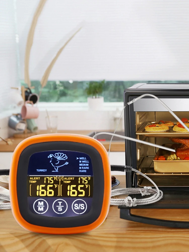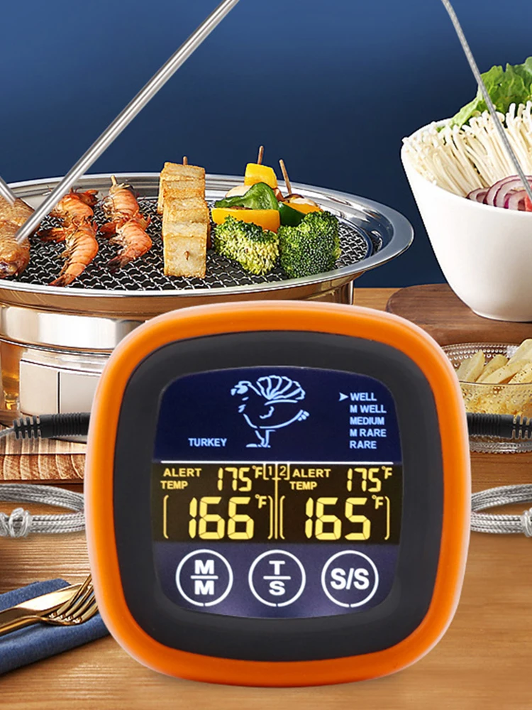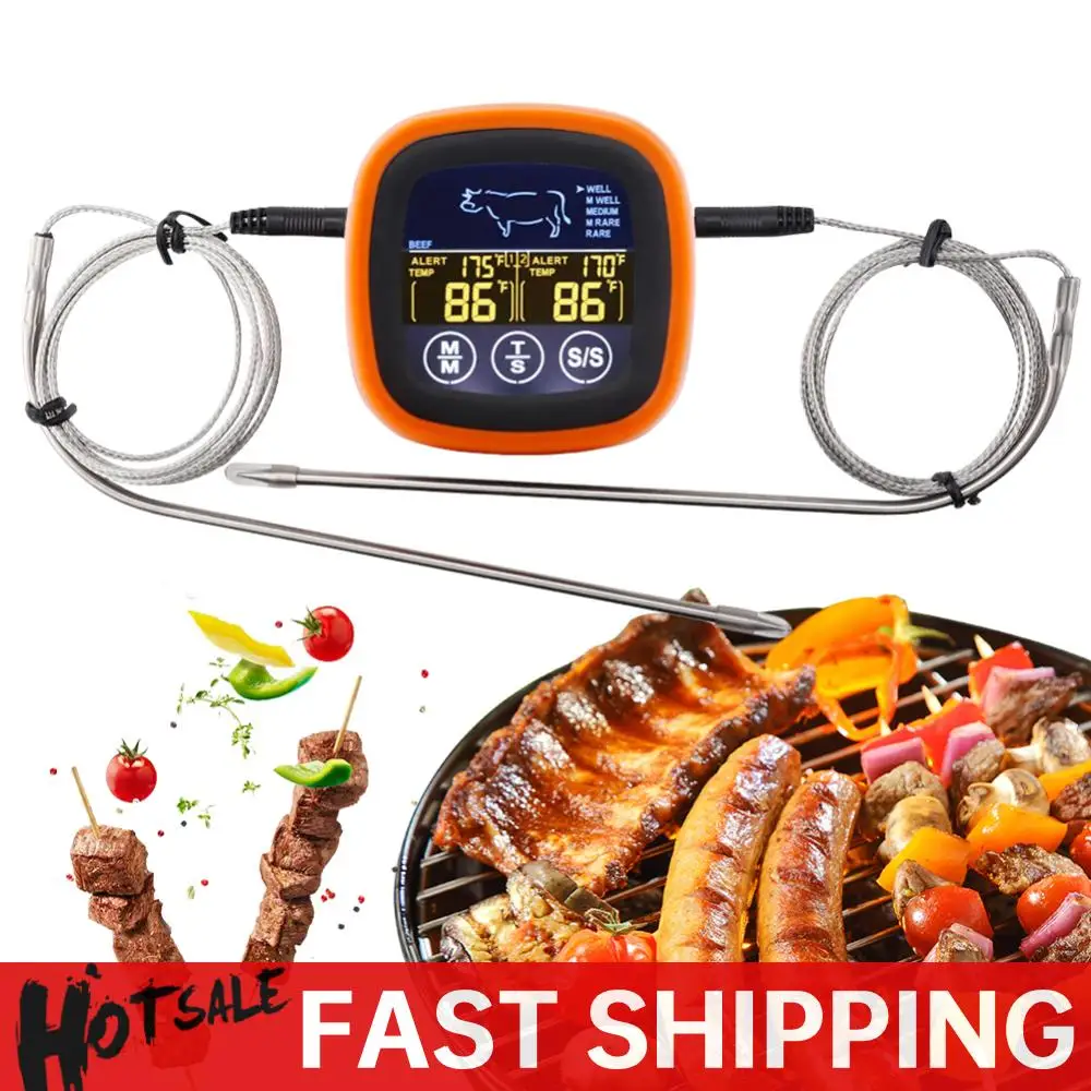 Digital Meat Temperature Thermometer Probe Touch Screen Waterproof Meat Barbecue Food Temperature Measure Tool with 2 Probes Oven Cooking BBQ Temperature Meter Timer Mode for Grilling BBQ Cooking