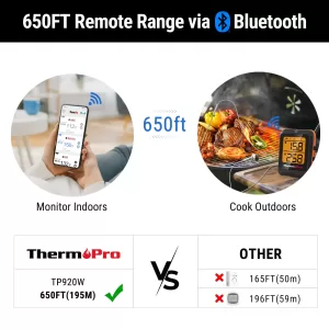 - Effectively Manage Your Time: Equipped with an advanced algorithm, this smoker thermometer wireless can estimate proper cooking times to help better plan your meals. Pre-alarm settings (5/10/15°F) ensure your meat is removed from the heat at the perfect time.