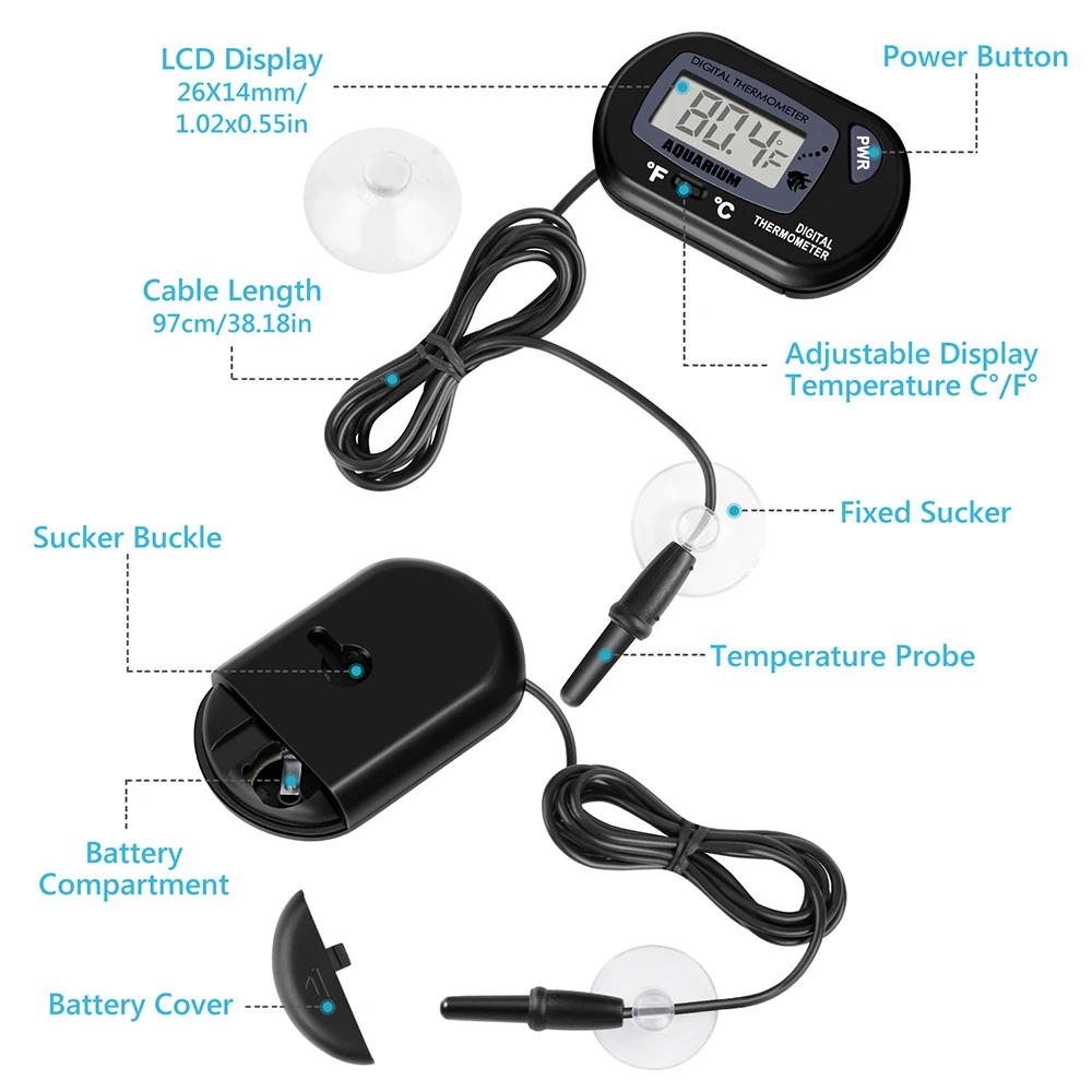 Digital Thermometer Aquarium Fish Tank Swimming Pool Bath Temperature Sensor Meter Temperature Monitor Detector with Suction Cup