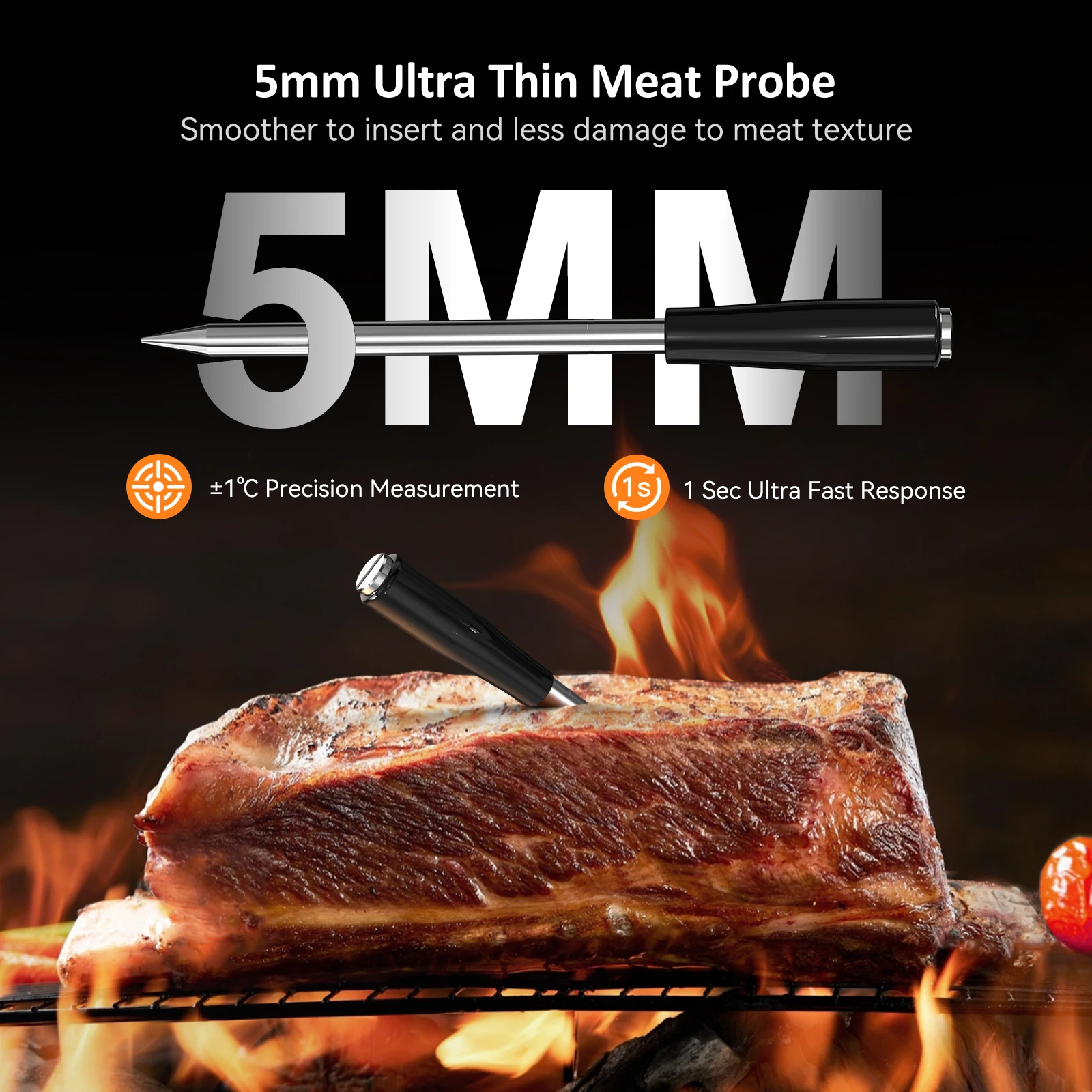 ² 5mm ultra thin probe for easier insertion and less damage to meat texture