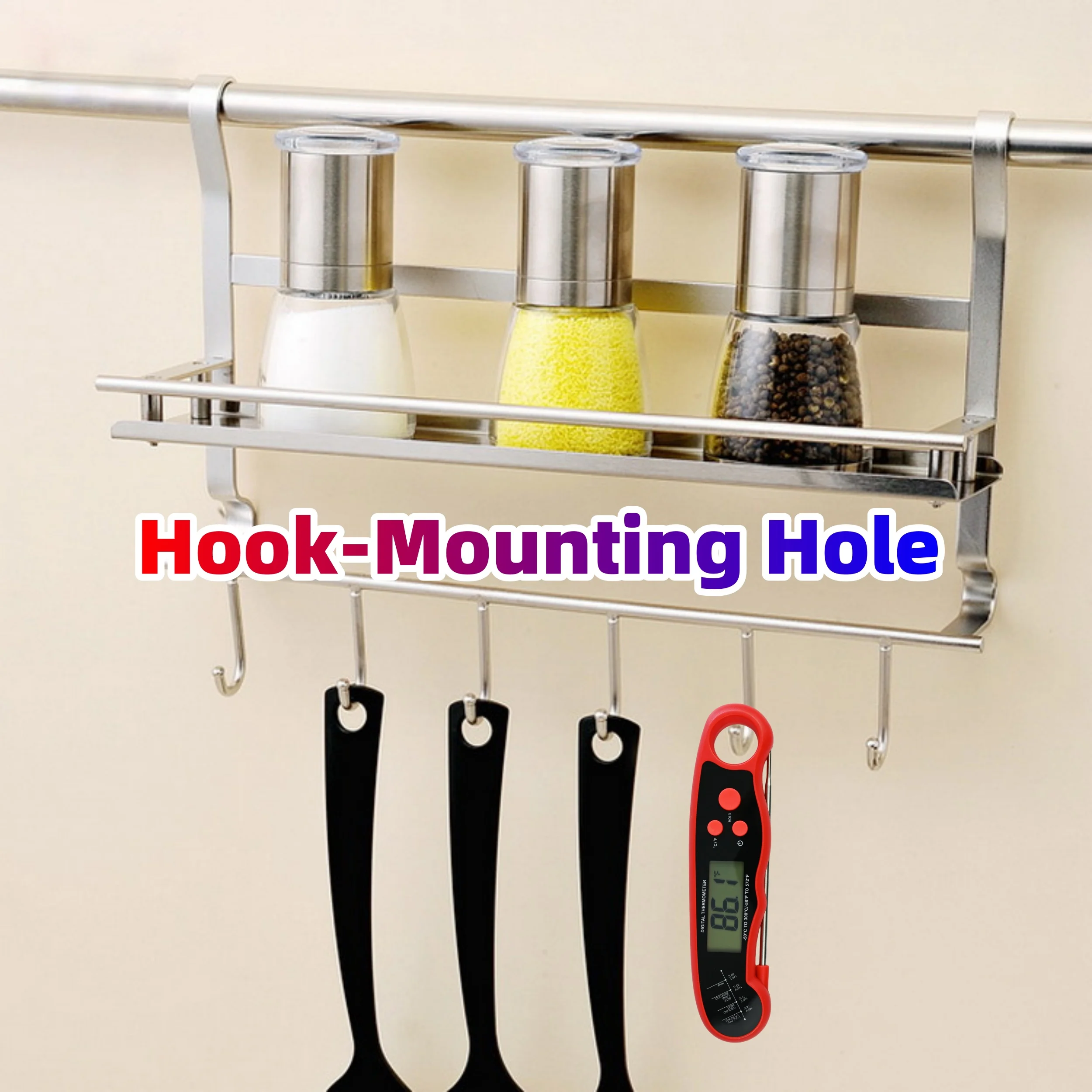[CONVENIENCE IN LIFE STARTS WITH SIMPLE OPERATION]–The probe reads when unfolded, and closes when restored to its original position. It automatically closes after 3 minutes when not in use, saving power and providing peace of mind. The magnet and hanging hole design of the cooking thermometer will help you store it better. You can attach it directly to the refrigerator, or hang it on a hook to make your kitchen tidier.