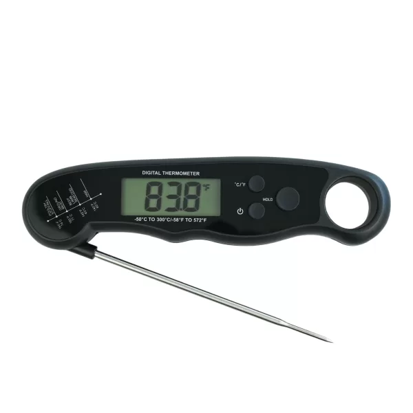 It can easily detect the temperature of food. You only need to wait for 2-3 seconds to obtain the accurate temperature of the food. Meanwhile, the food thermometer can switch between Celsius and Fahrenheit by simply clicking the "℃"/"℉ CAL" button. The temperature range is -50 ℃ to 300 ℃ (-58 ℉ to 572 ℃ ℉), suitable for turkey, steak, and candy. Production, outdoor barbecue, etc. [Reading becomes so simple] – The meat thermometer has a large LED display screen with backlight. You can clearly see the numbers on the monitor. At the same time, clicking the "light" button in extremely dark scenes can help you better obtain the temperature value of your food. If you want to keep the temperature constant, you just need to click the "keep" button to keep the food at its most delicious moment. Convenience in life begins with simple operation – the probe reads when unfolded and closes when restored to its original position. When not in use, it will automatically shut down after 3 minutes, saving power and providing peace of mind. The magnet and hanging hole design of the cooking thermometer will help you store it better. You can hang it directly on the refrigerator or hang it on a hook to make your kitchen cleaner. Wear resistant, waterproof, and undamaged – The shell of the instant meat thermometer is made of high-quality wear-resistant materials, which are sturdy, durable, and drop resistant. You can choose to wipe with a damp towel or rinse directly with tap water (note: not suitable for dishwashers) without worrying about damage. 【 More reliable quality, safer choice 】 – Thank you for choosing this kitchen thermometer. Our products have strict quality inspection procedures, so you can purchase with confidence. It is very suitable for cooking enthusiasts around you. If you have any questions about use, please contact us and we will provide sincere assistance to make your choices safer and your life easier. It can easily detect the temperature of food. You only need to wait for 2-3 seconds to obtain the accurate temperature of the food. Meanwhile, the food thermometer can switch between Celsius and Fahrenheit by simply clicking the "℃"/"℉ CAL" button. The temperature range is -50 ℃ to 300 ℃ (-58 ℉ to 572 ℃ ℉), suitable for turkey, steak, and candy. Production, outdoor barbecue, etc.