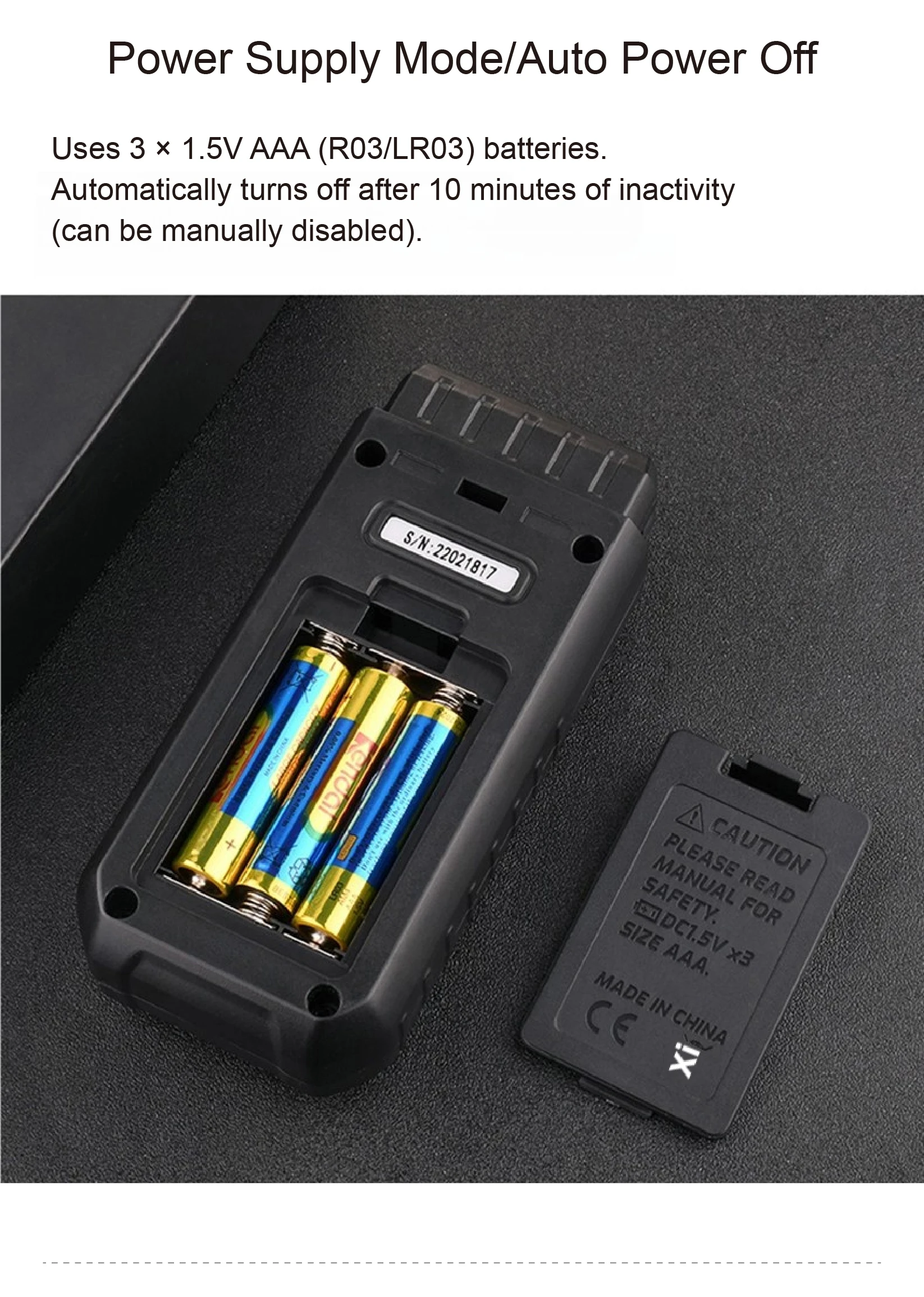 · Power supply: 3 × 1.5V AAA batteries