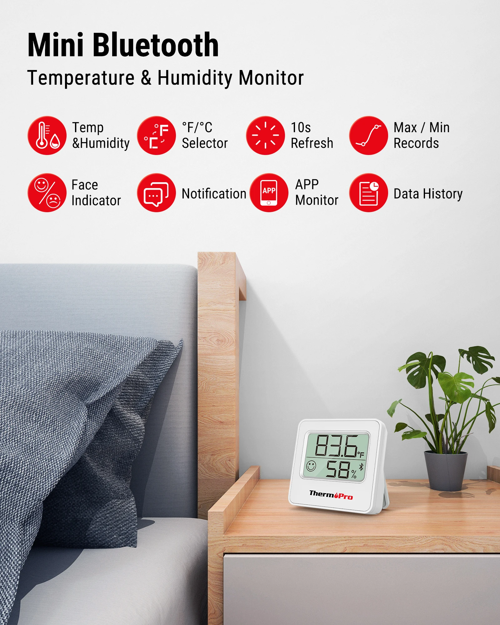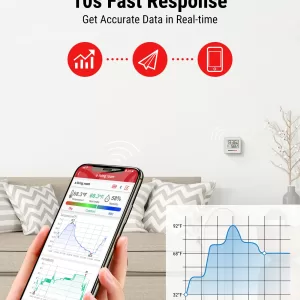 TP357 is equipped with 2.4GHZ wireless Bluetooth-compatible function, and can connect to smartphone app. You will now be able to remotely monitor the temperature and humidity of your living room, bedroom, greenhouse and etc. from your smartphone.
