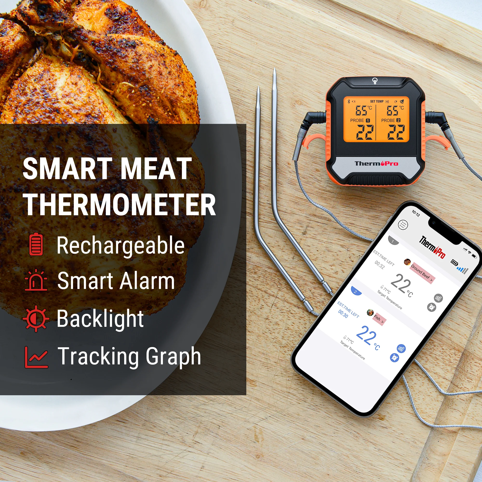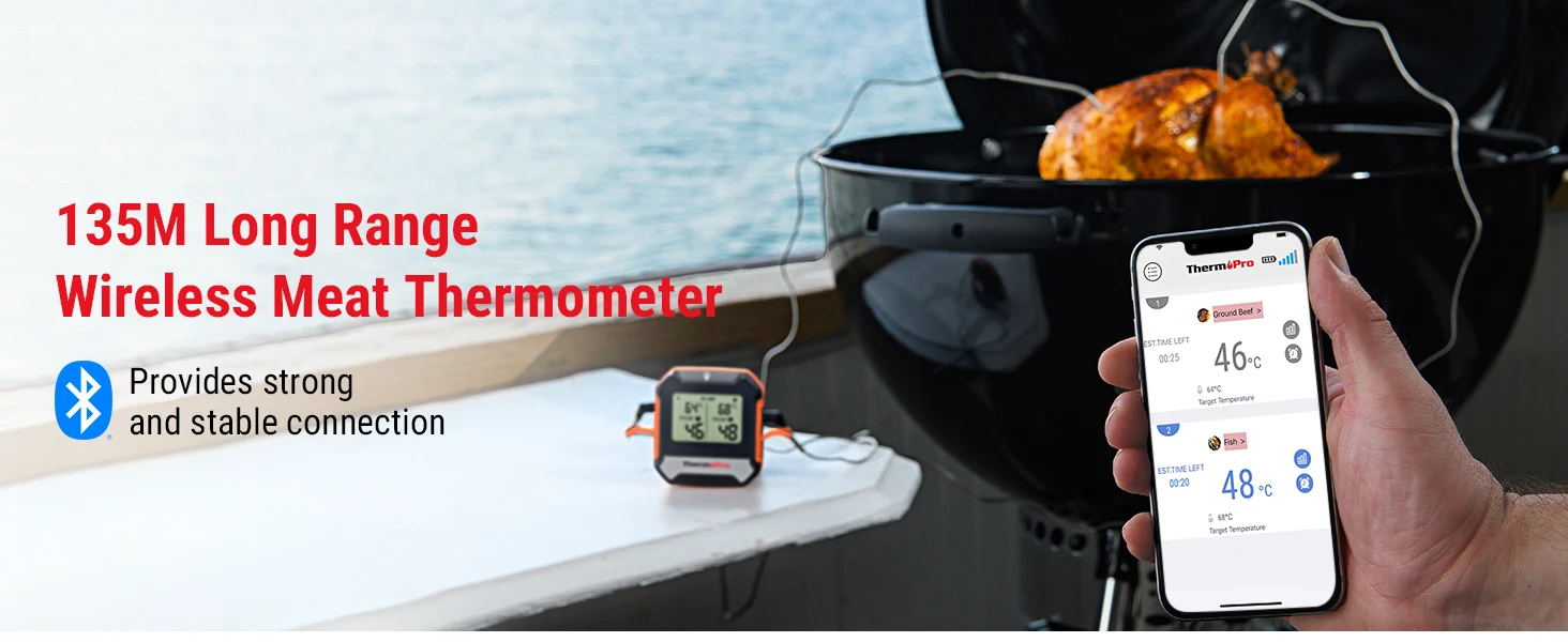 ThermoPro TP904 is a smart, wireless Bluetooth connected cooking thermometer. You will be able to remotely monitor the temperature of food and how much time is left for the food to be done from your smartphone.