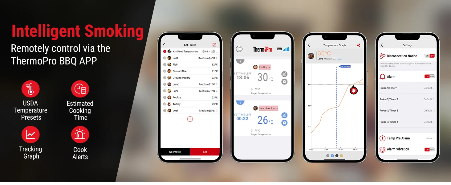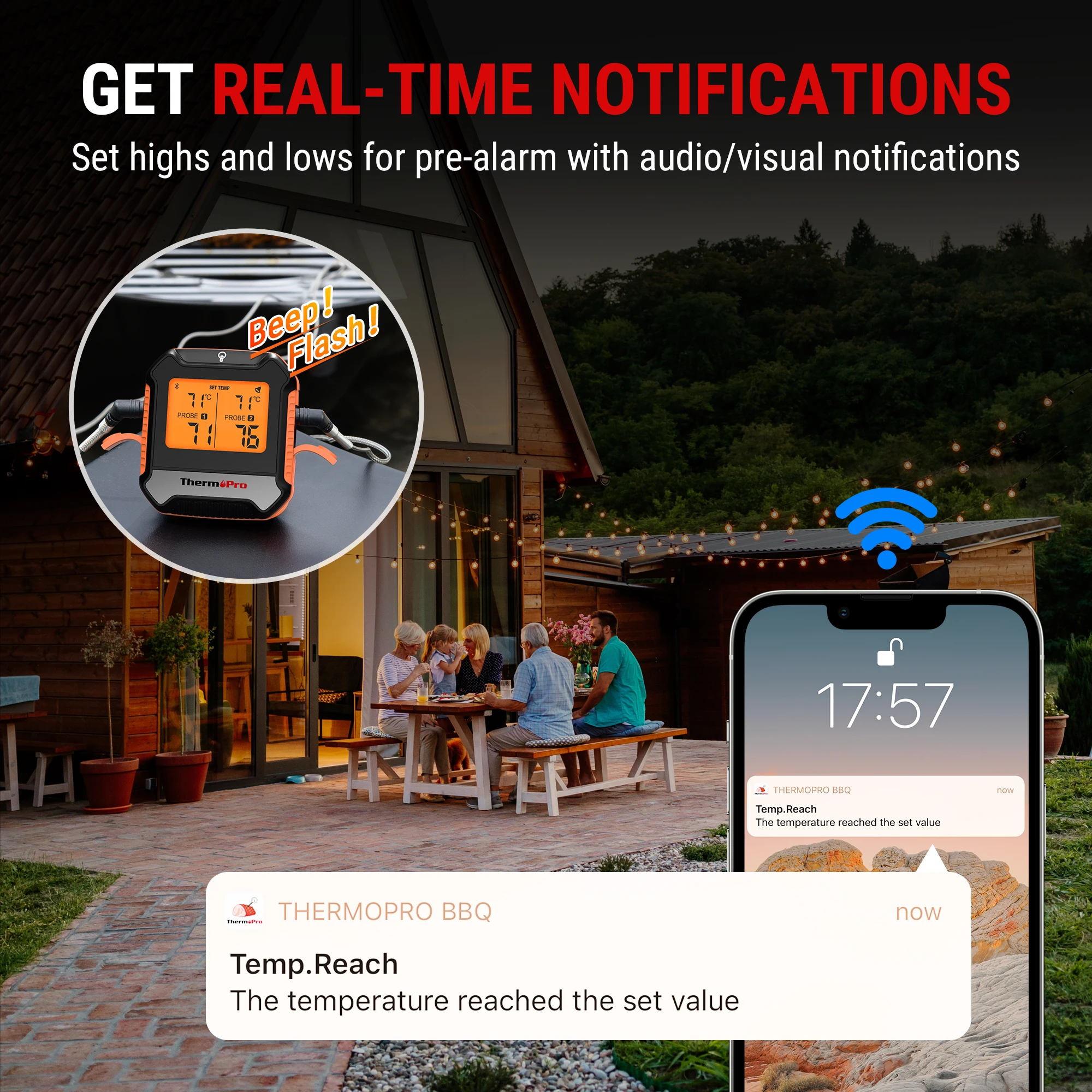 ✔Cook Alerts:When the temperature/time is reached, the APP will send a message reminder