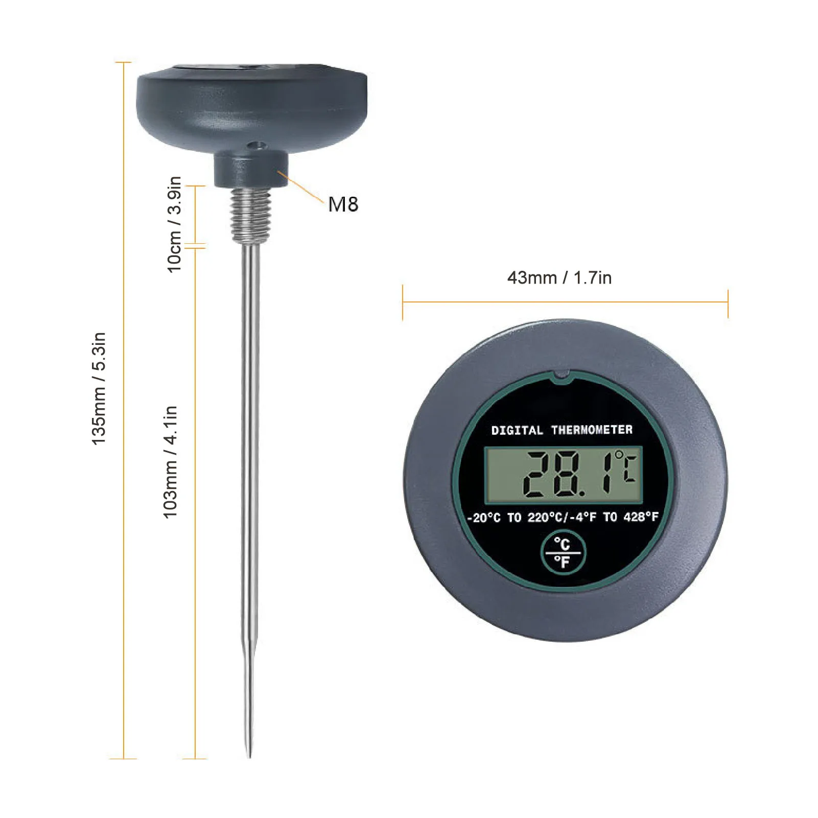 5. QUALITY MATERIALS: The temperature probe is made from food grade 304 stainless steel, ensuring safety and durability. The outer shell is crafted from quality ABS material, providing robustness that withstands daily use in any kitchen