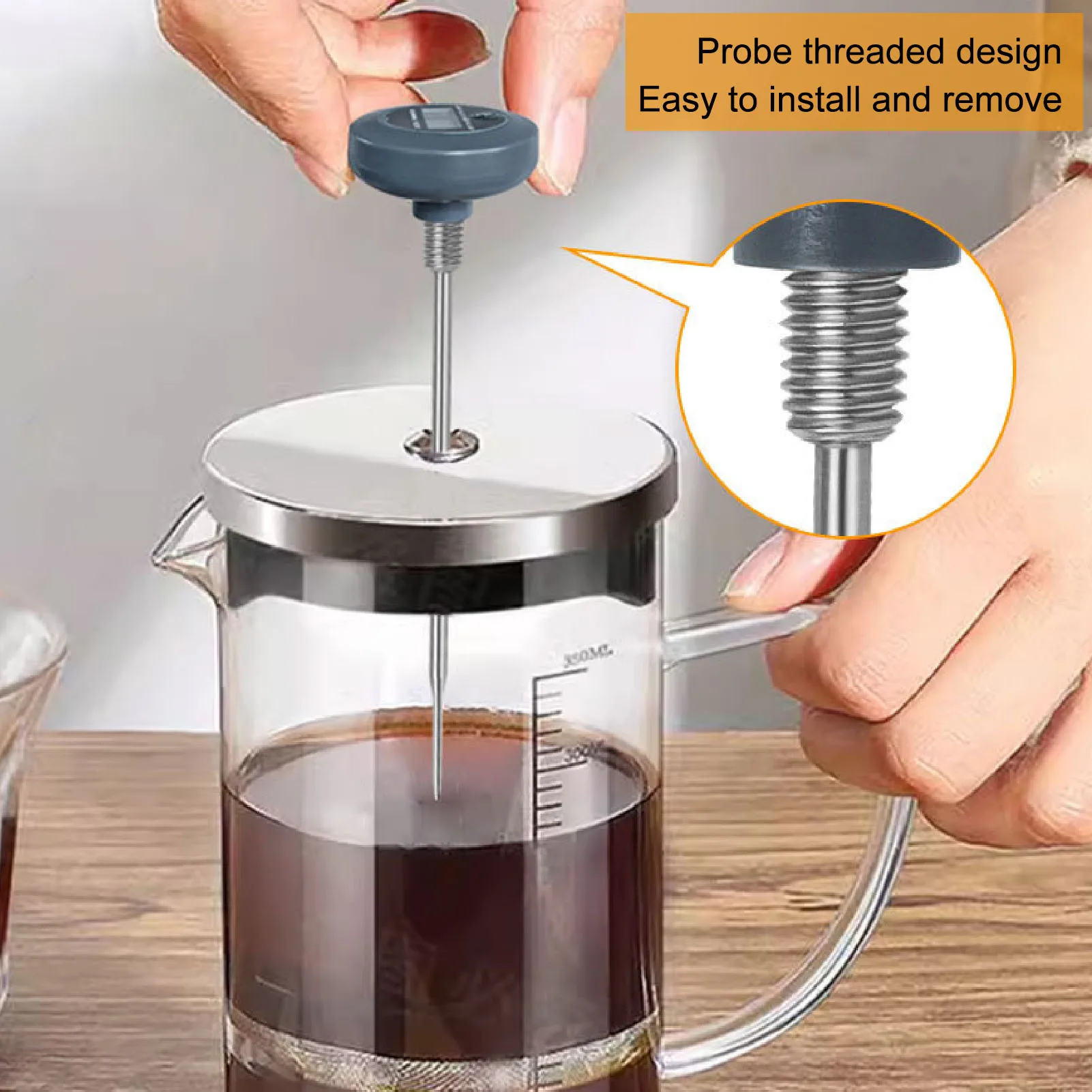 2. VERSATILE USAGE: The thermometer with a probe can be used for various containers such as coffee, milk, and water bottles, fulfilling the temperature measurement needs for a wide range of beverages, ensuring you get the best results for each drink