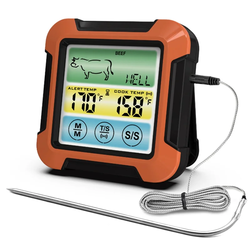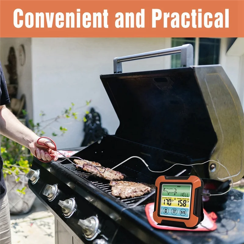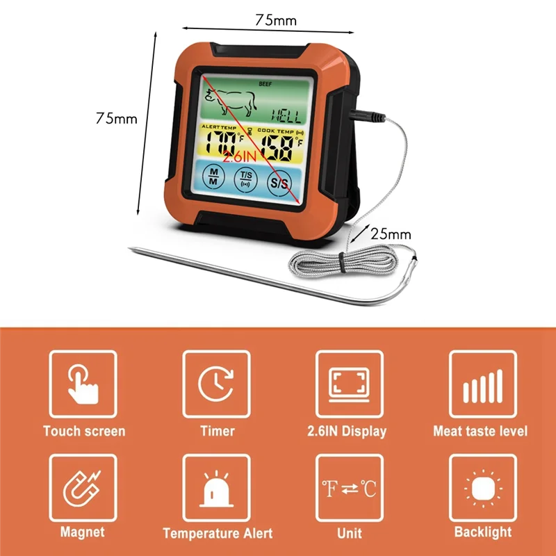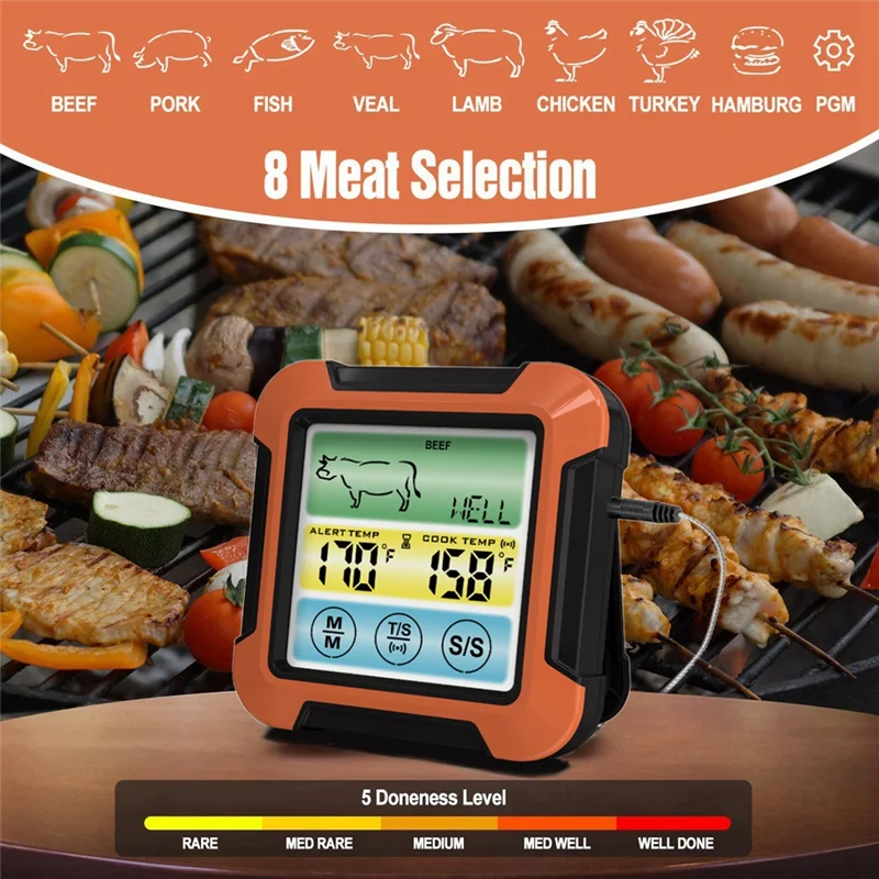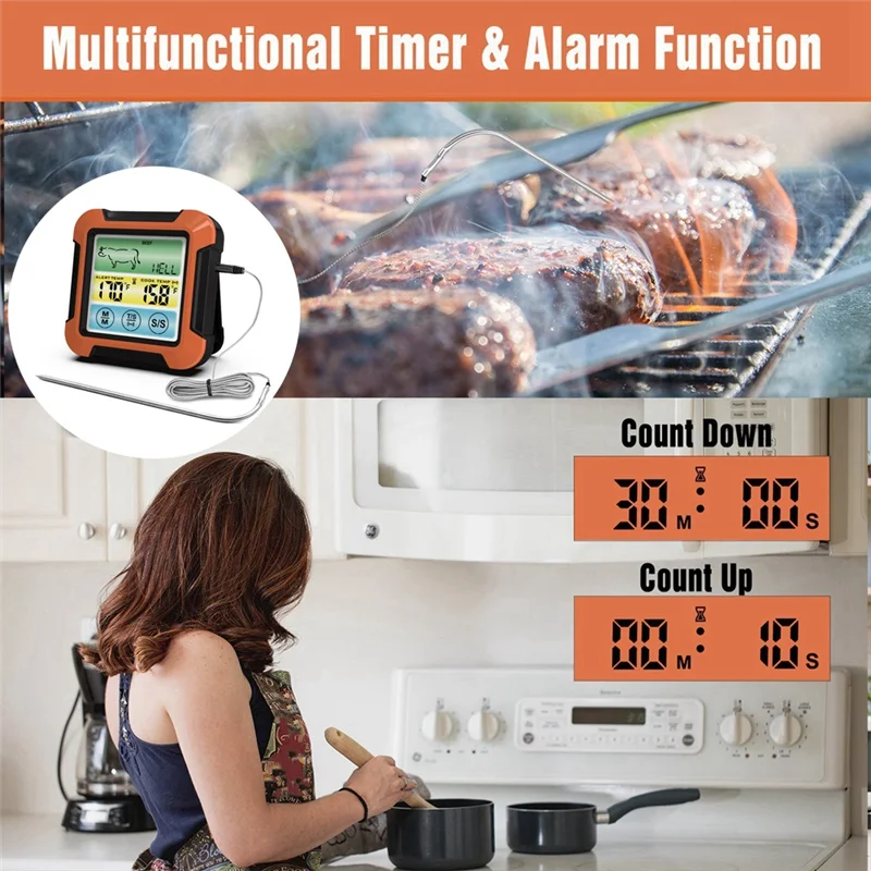 Built-in 8 foods and 5 flavors to choose from, you can also customize the target temperature setting, with kitchen timer function, with magnet and stand for easy storage. This product adds new temperature measurement mode and timer mode running at the same time and alarm function, solving the similar products can only run in a single mode of the pain points