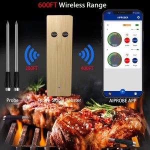 PROBE FEATURES: Our wireless thermometer has a stainless steel design, is water-resistant, and easy to clean. It can monitor internal meat temperature up to 608°F, with accuracy within ±1.5°F. Â