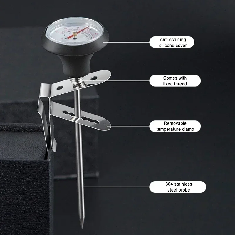 - Feature 1: stainless steel,thermometer,Hand brewed coffee,Pot matching,Milk latte glass,Clamp type,Temperature Probe,Kitchen tools,Kitchen supplies