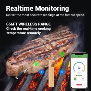 2. Extended Bluetooth Range: Built in Bluetooth 5.2 with a 656ft Bluetooth range, you can monitor your cooking from anywhere in your home, giving you the freedom to move around without losing connection.