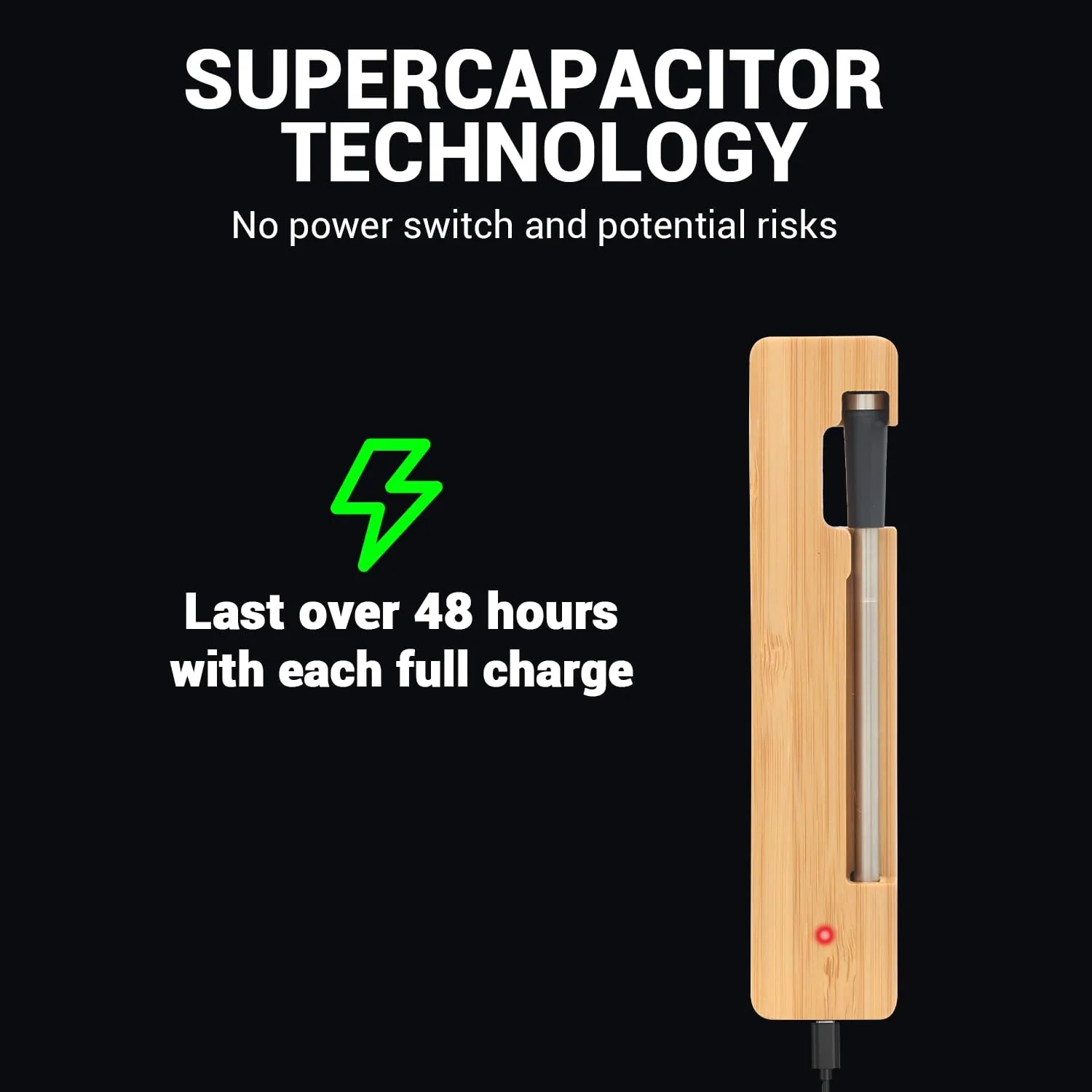 7. Type-C Charging & Long Battery Life: Equipped with a Type-C charging port, the base charges in just 3 hours and lasts for 24 hours of continuous use. The probe works independently for up to 48 hours, making it reliable for long cooking sessions.