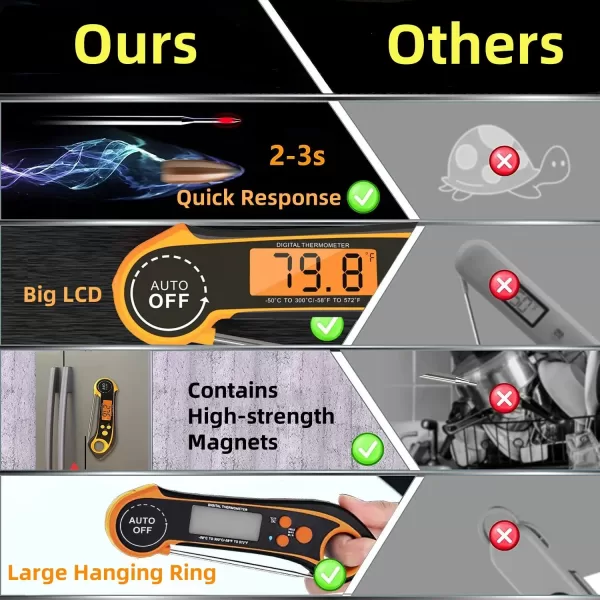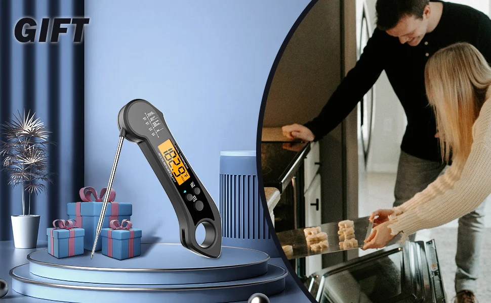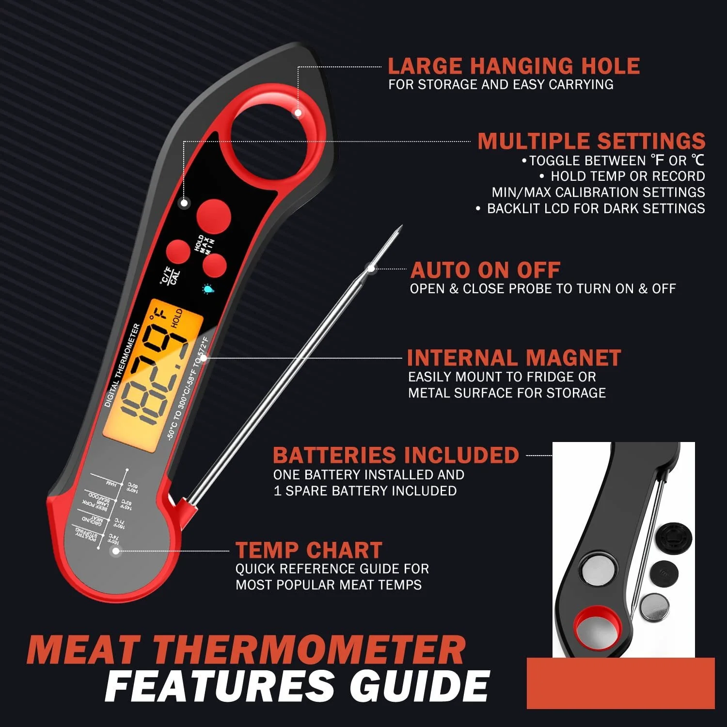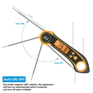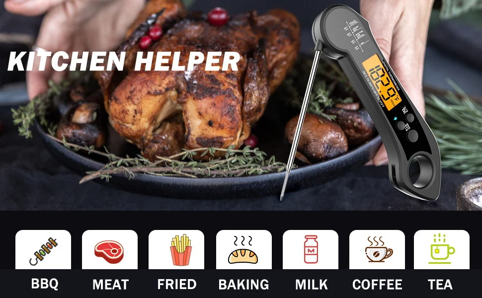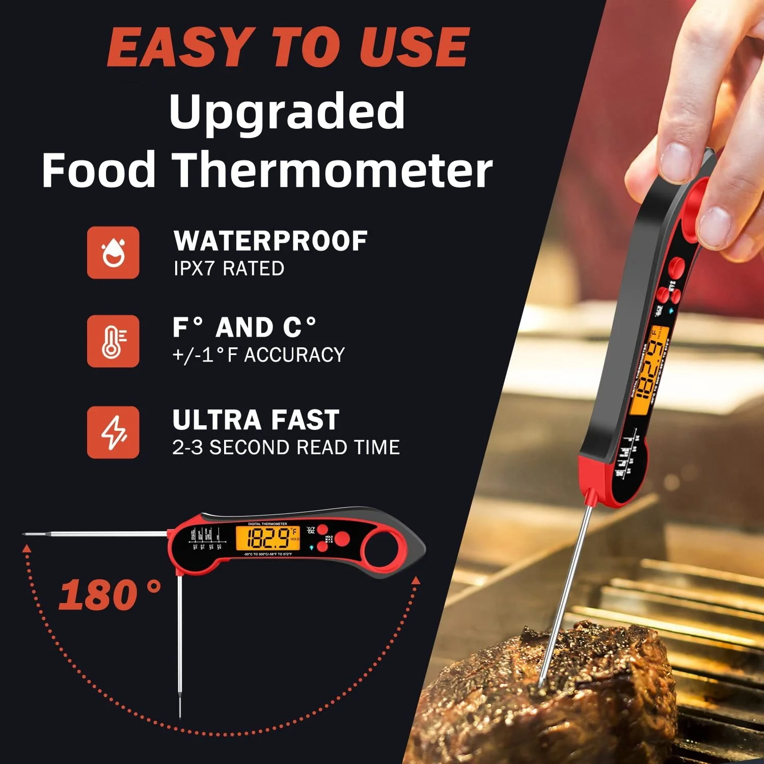 Upgrade Big Digital LCD Food Thermometer Fast Test Measure Beef Meat Temperature Lock 180° Extended Auto Switch IPX7 Waterproof