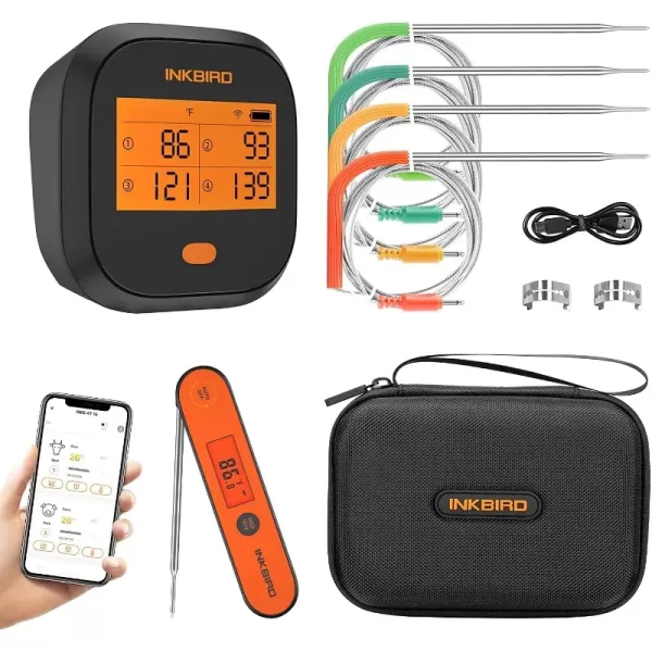 WiFi Grill Thermometer IBBQ-4T & Instant Read Thermometer IHT-1P & Carrying Case, Meat Thermometer for Oven, Smoker, Coo