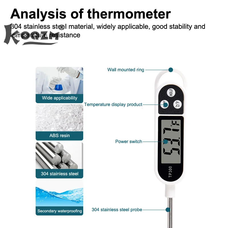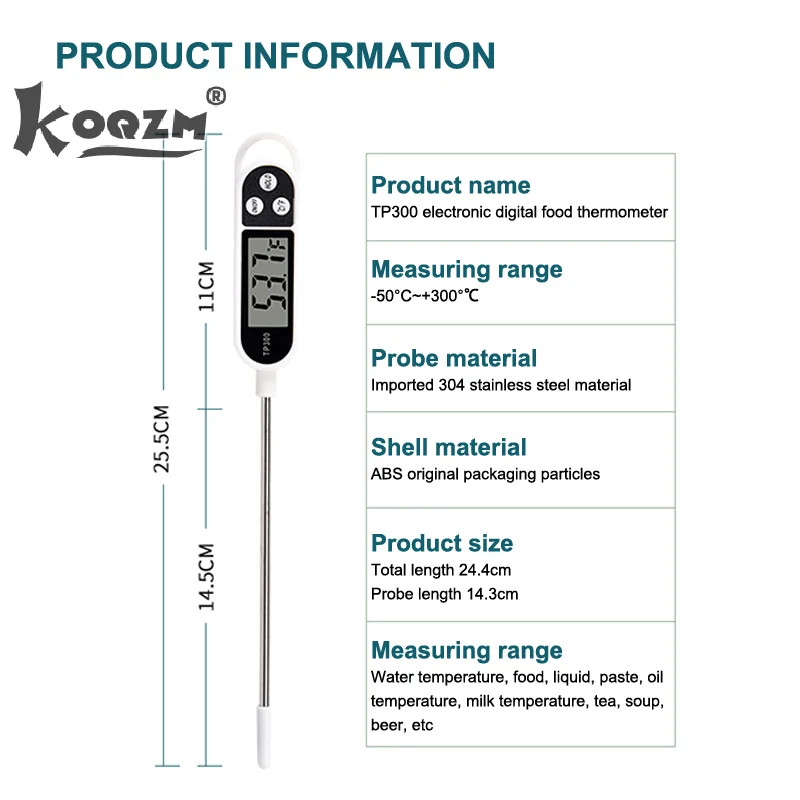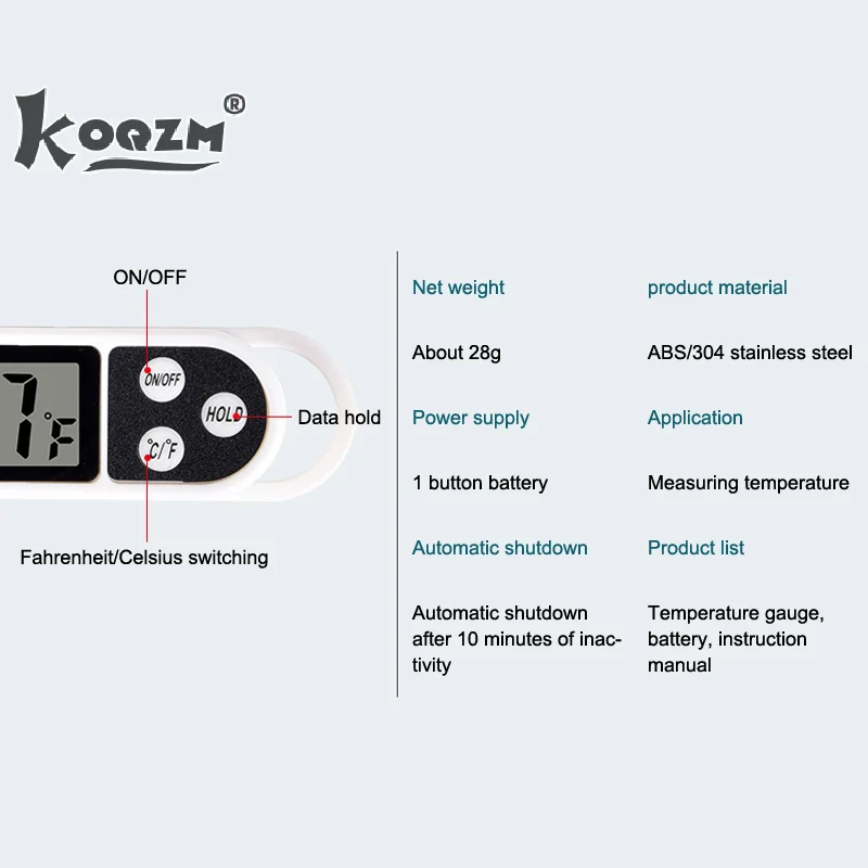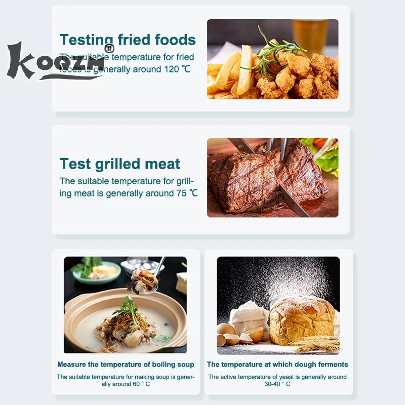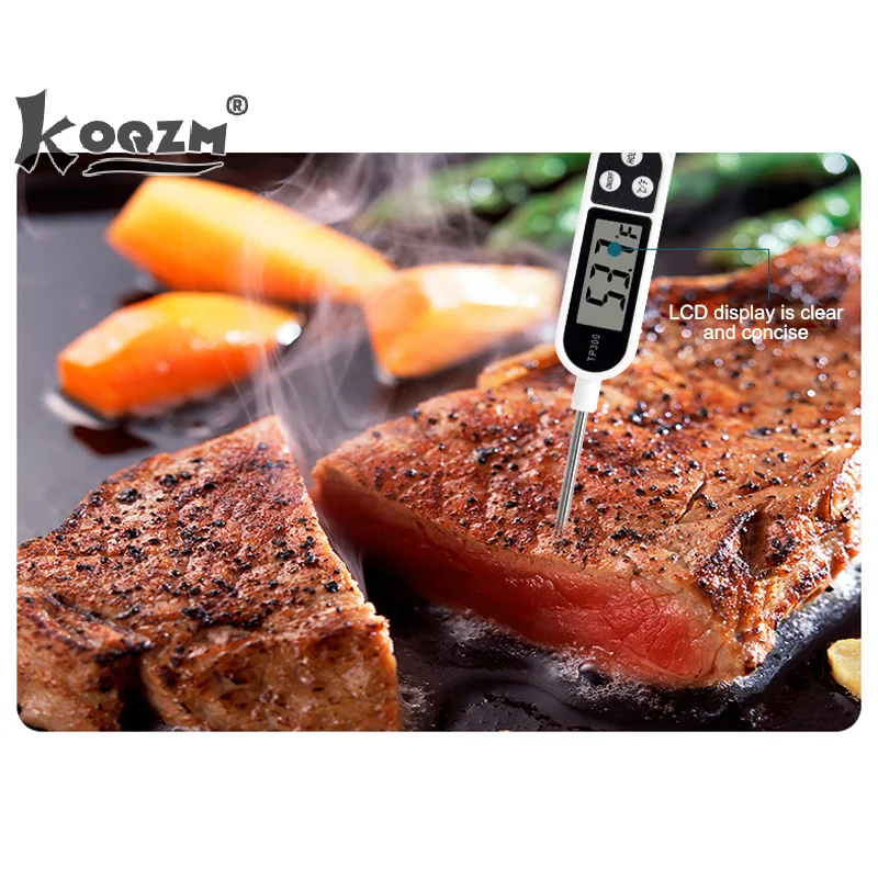 1. Easy to use:Using a digital food thermometer, you simply insert the question into the cooking meat, press the button to start measuring the temperature, and then display the food temperature on the LCD screen.