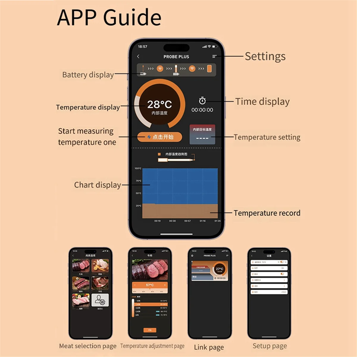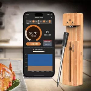[30m BT Transmission Range] – This smart wireless barbecue thermometer has a remarkable transmission range of up to 30 meters, allowing you to monitor your food’s temperature from a distance. Whether you’re grilling in the backyard or hosting a barbecue party, you can stay connected to your thermometer without being tied down.
