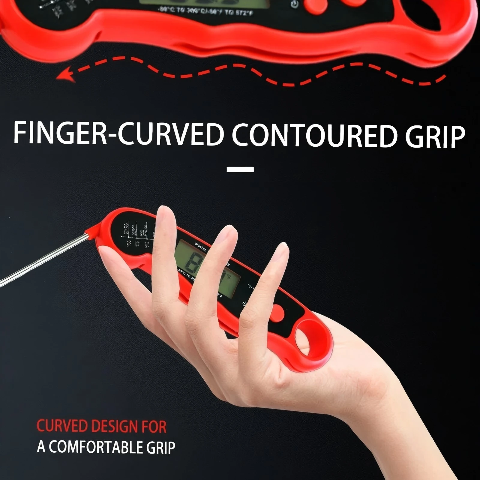 It can easily detect the temperature of food. You only need to wait for 2-3 seconds to obtain the accurate temperature of the food. Meanwhile, the food thermometer can switch between Celsius and Fahrenheit by simply clicking the "℃"/"℉ CAL" button. The temperature range is -50 ℃ to 300 ℃ (-58 ℉ to 572 ℃ ℉), suitable for turkey, steak, and candy. Production, outdoor barbecue, etc. [Reading becomes so simple] – The meat thermometer has a large LED display screen with backlight. You can clearly see the numbers on the monitor. At the same time, clicking the "light" button in extremely dark scenes can help you better obtain the temperature value of your food. If you want to keep the temperature constant, you just need to click the "keep" button to keep the food at its most delicious moment. Convenience in life begins with simple operation – the probe reads when unfolded and closes when restored to its original position. When not in use, it will automatically shut down after 3 minutes, saving power and providing peace of mind. The magnet and hanging hole design of the cooking thermometer will help you store it better. You can hang it directly on the refrigerator or hang it on a hook to make your kitchen cleaner. Wear resistant, waterproof, and undamaged – The shell of the instant meat thermometer is made of high-quality wear-resistant materials, which are sturdy, durable, and drop resistant. You can choose to wipe with a damp towel or rinse directly with tap water (note: not suitable for dishwashers) without worrying about damage. 【 More reliable quality, safer choice 】 – Thank you for choosing this kitchen thermometer. Our products have strict quality inspection procedures, so you can purchase with confidence. It is very suitable for cooking enthusiasts around you. If you have any questions about use, please contact us and we will provide sincere assistance to make your choices safer and your life easier. It can easily detect the temperature of food. You only need to wait for 2-3 seconds to obtain the accurate temperature of the food. Meanwhile, the food thermometer can switch between Celsius and Fahrenheit by simply clicking the "℃"/"℉ CAL" button. The temperature range is -50 ℃ to 300 ℃ (-58 ℉ to 572 ℃ ℉), suitable for turkey, steak, and candy. Production, outdoor barbecue, etc.