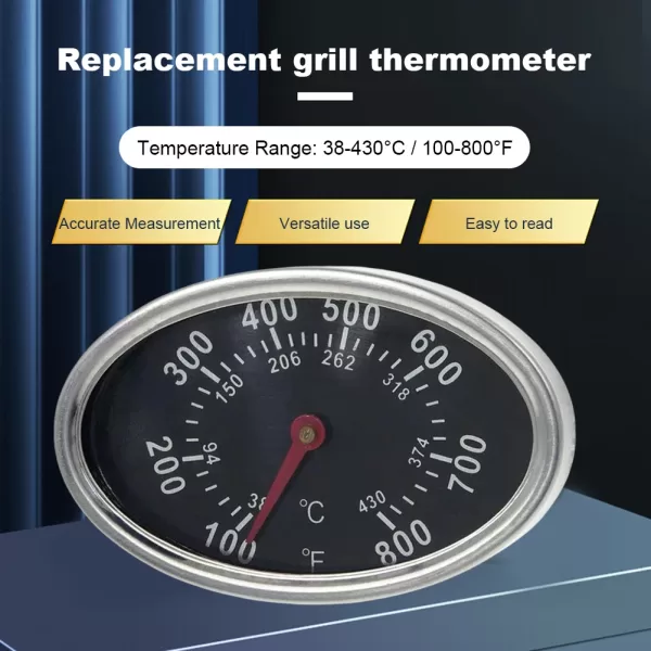 Feature: 1. Accurate Measurement: This grill lid thermometer utilizes a dual-metal design to provide accurate temperature readings. It quickly responds and displays the current grill temperature, ensuring your food is cooked within the ideal range. 2. Versatile Usage: Suitable for various grills, BBQ ovens, and stoves, this grill temperature gauge caters to different cooking needs. It can be easily installed and adjusted according to your requirements, allowing you to achieve optimal grilling results effortlessly. 3. High-Temperature Resistance: Made from high-temperature-resistant materials, this bbq grill thermometer performs reliably in hot environments without losing accuracy over time. It remains stable even in high-temperature conditions, offering long-lasting durability. 4. Easy-to-Read: Equipped with clear markings and a pointer, this barbecue bbq temp gauge enables easy and straightforward temperature readings. You can easily determine the current temperature by observing the position of the pointer, allowing precise control over the grilling process. 5. Reliable and : This grill temperature gauge gas grill heat indicator boasts excellent quality and durability, making it a reliable tool that can withstand prolonged use. It eliminates the need for frequent replacements or repairs, providing a long-lasting solution for your grilling needs. Specification: