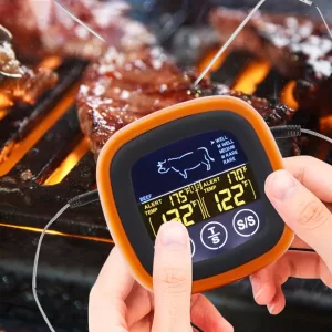 Digital Meat Temperature Thermometer Probe Touch Screen Waterproof Meat Barbecue Food Temperature Measure Tool with 2 Probes Oven Cooking BBQ Temperature Meter Timer Mode for Grilling BBQ Cooking