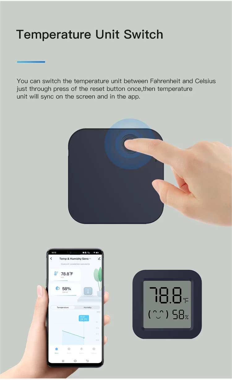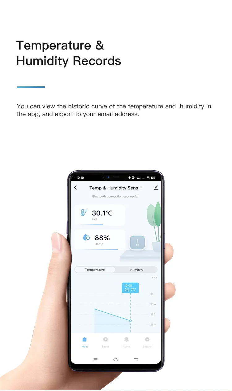 3. The sensor cannot set alarm. The alarm function is set on the APP.
