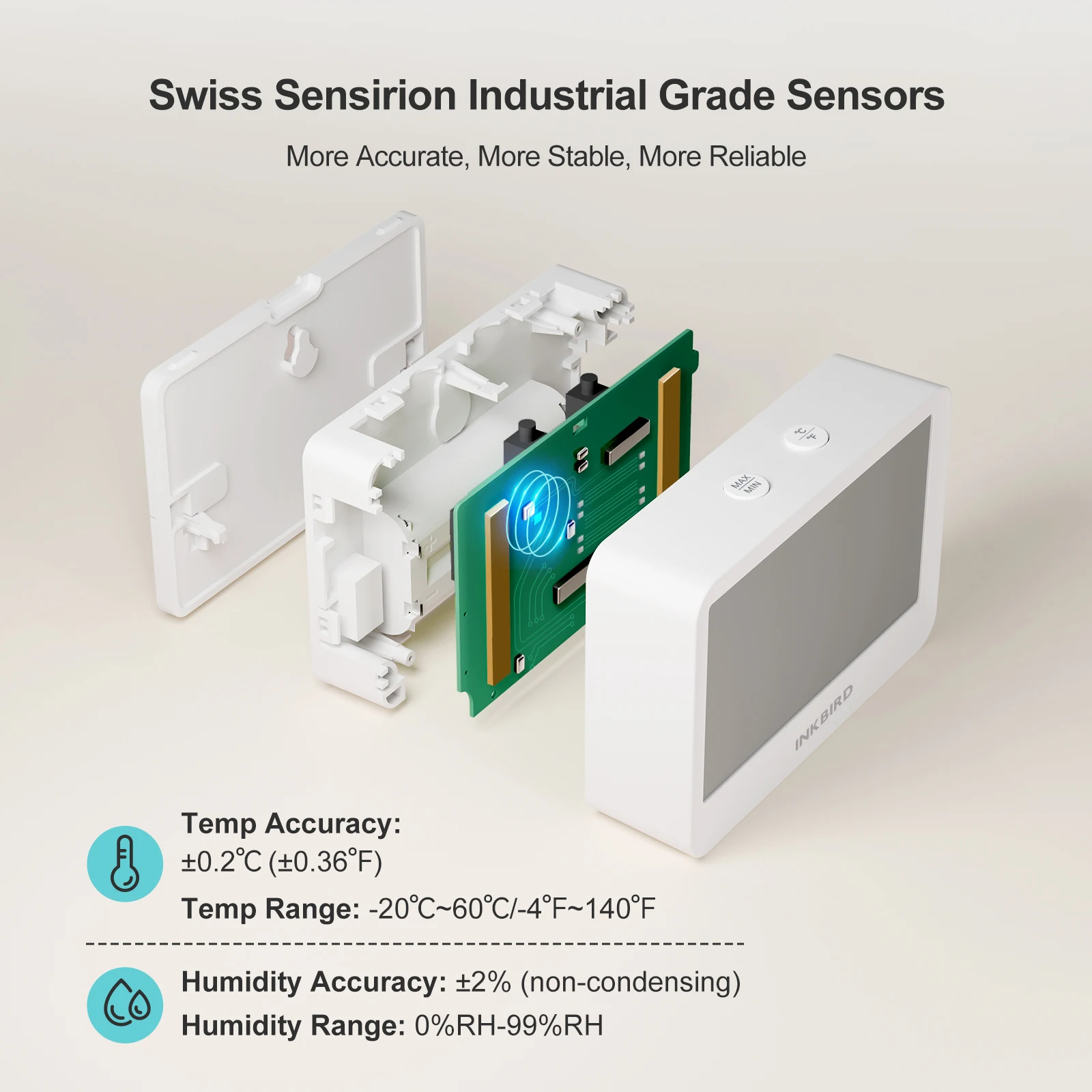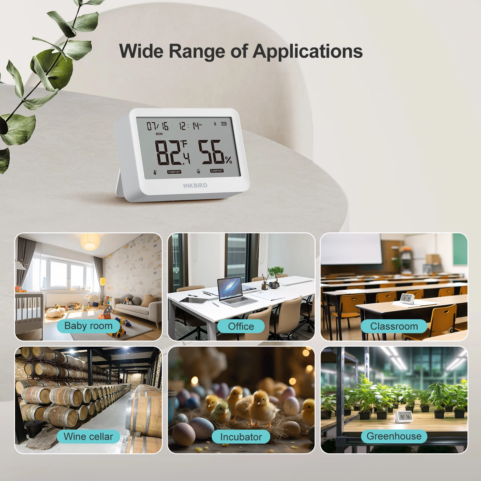 The new INKBIRD intelligent temperature and humidity detector is equipped with an industrial-grade sensor manufactured by Sensirion, a company based in Switzerland. The sensor is capable of achieving high levels of accuracy in both temperature and humidity measurements, with an error margin of ±0.2℃ and ±2%, respectively. The device’s distinctive design incorporates both date and clock functions, with a large 3.8-inch screen that facilitates clear and straightforward visual interpretation. Moreover, the display layout can be changed according to the user’s specifications. The device is capable of accurately monitoring the air in a variety of environments, including domestic settings such as the home, nursery, bedroom, office and classroom. The device’s extended battery life of 15 months ensures prolonged operation, while the high-quality materials and workmanship ensure reliability, thus providing a new, smart and comfortable living experience.